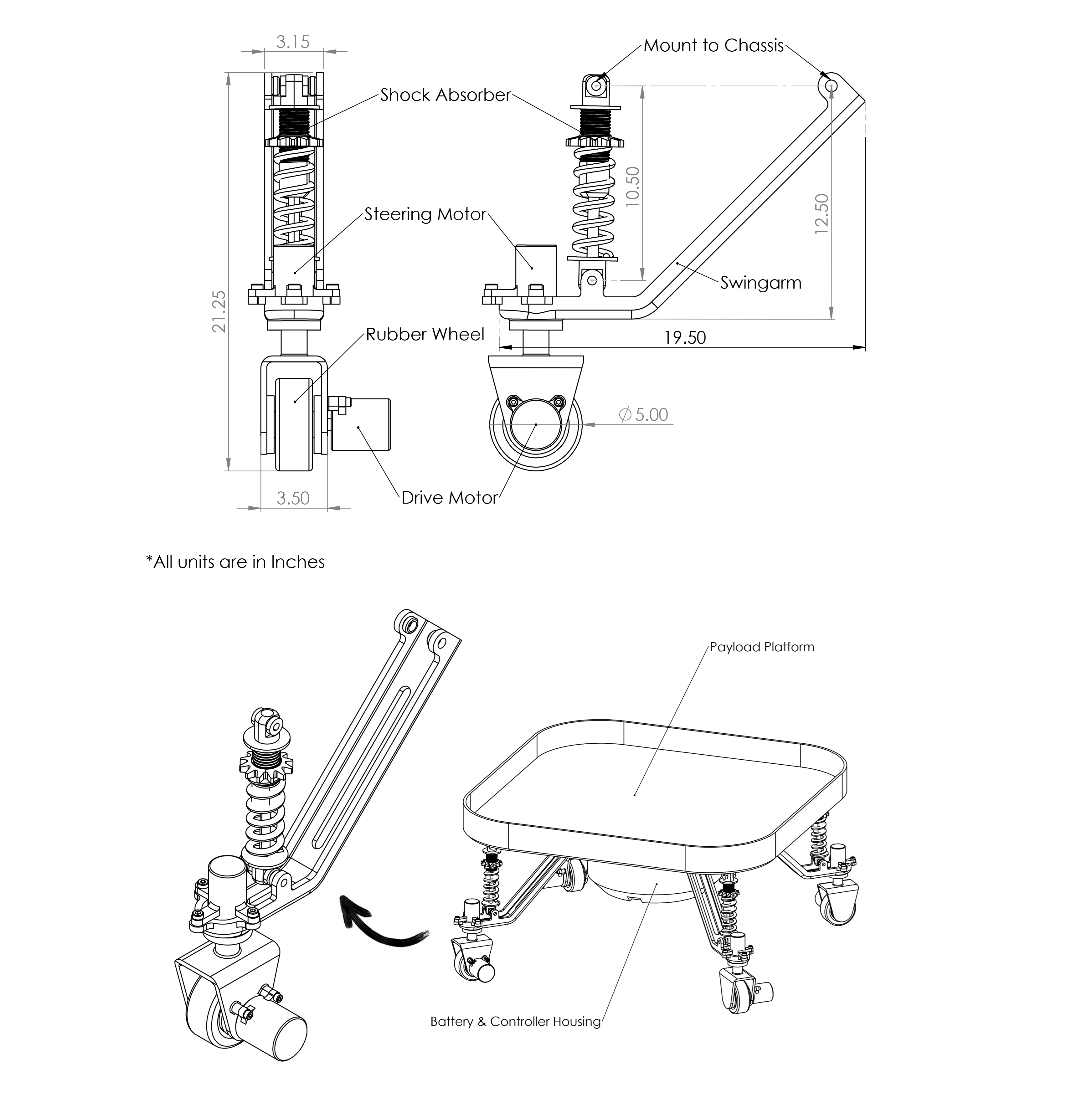 Suspension System Design for a 200kg Differential Drive Robot on Concrete or Epoxy Floors.