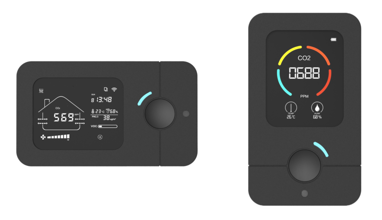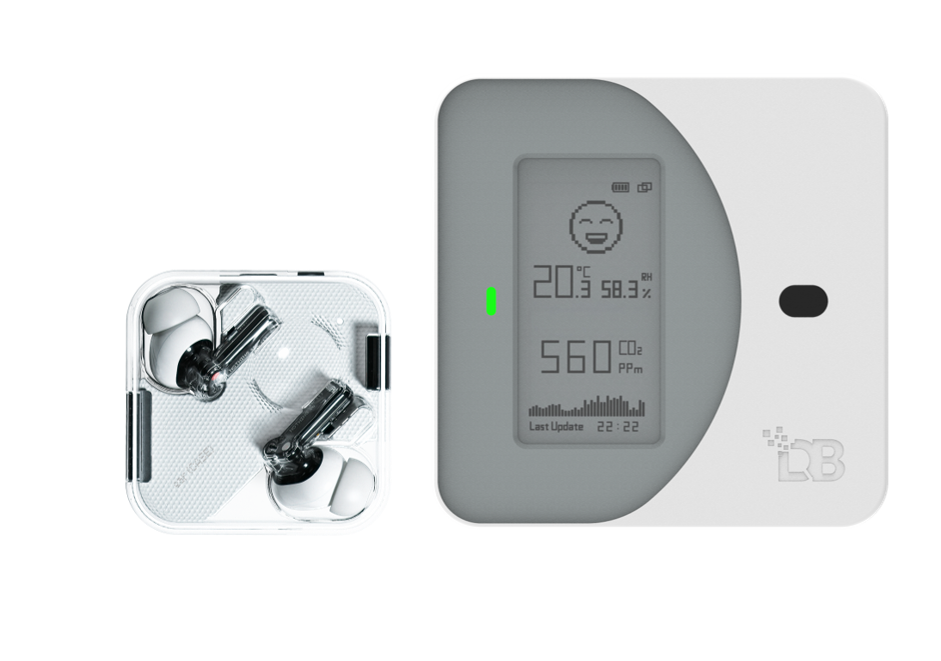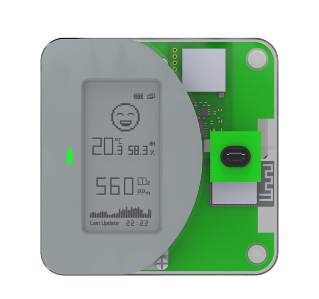 The Internal Air Quality device sets a new standard for compactness while incorporating a state-of-the-art E-Ink display. Measuring merely a few inches in size, this device boasts an incredibly sleek and minimalistic design.