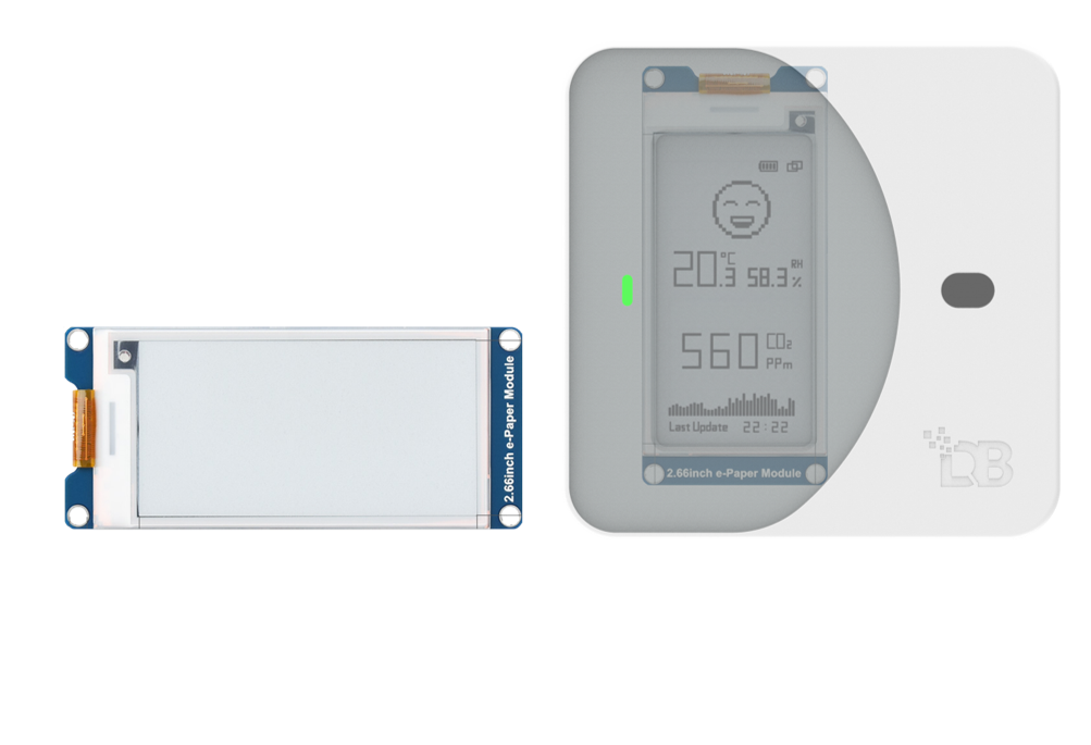 The 2.66-inch E-Ink display used in the Internal Air Quality device is a compact and energy-efficient screen designed to showcase essential information about indoor air quality.